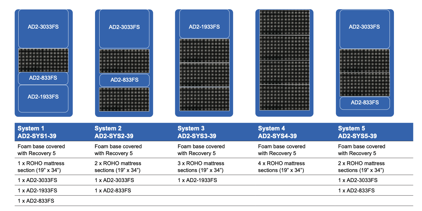 AD2-SYS5-39 ADAPT 2 SERIES SYSTEM 5 PKG. INCLUDES 2 ROHO MATTRESS SECTIONS (19” x 34”) or VICAIR INLAY