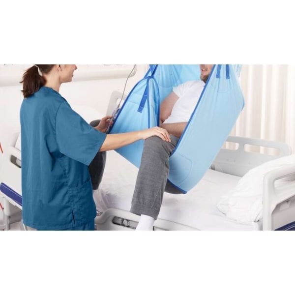 Choosing the right sling is essential for safe patient handling. Therefore, caregivers must ensure the sling matches the patient’s needs, the type of transfer, and the lifting equipment used.