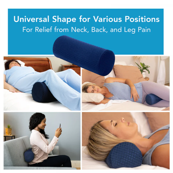 - Features an ergonomic bolster shape. The bolster pillow's cylindrical shape can be used to reduce head, shoulder, neck, and back discomfort. Place it under your neck, back, knees, or ankles for comforting pain relief.
