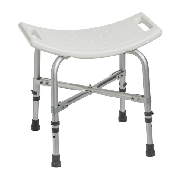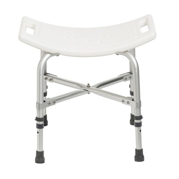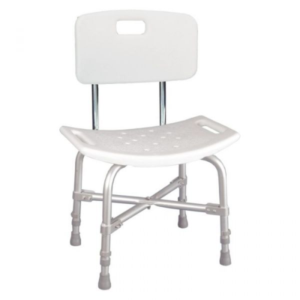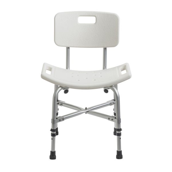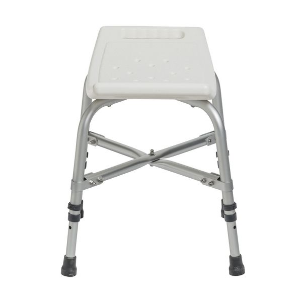The Deluxe Bariatric Shower Chair with Cross-Frame Brace from Drive is an ultra-sturdy shower chair built with cross braces that attach with aircraft-type rivets. Its durable, blow-molded plastic bench features drainage holes to reduce slipping. Adjustable height legs help you find the perfect fit.