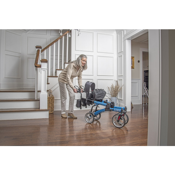 Brings users increased balance and stability while promoting better posture and providing a more natural line of sight than traditional mobility aids. Height-adjustable upholstered forearm pads keep arms supported and level for comfortable use, while large, ten-inch wheels make it perfect for indoor and outdoor use. With a one-handed, side-to-side fold, the Elevate Upright Walker is the stand-up mobility aid that’s easy to take on the go.