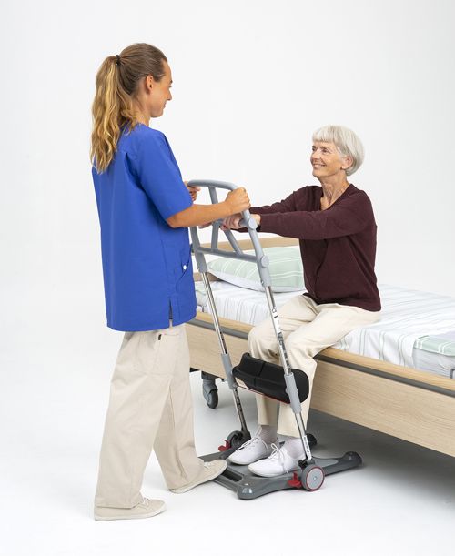 Molift Raiser Pro helps users to train and rehabilitate in all healthcare environments, during every transfer so mobilisation can begin early, right in the intensive care unit. The user can initially improve their balance when sitting and standing up. Molift Raiser Pro always provides safe support.