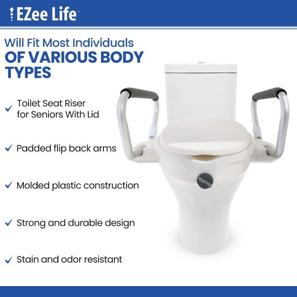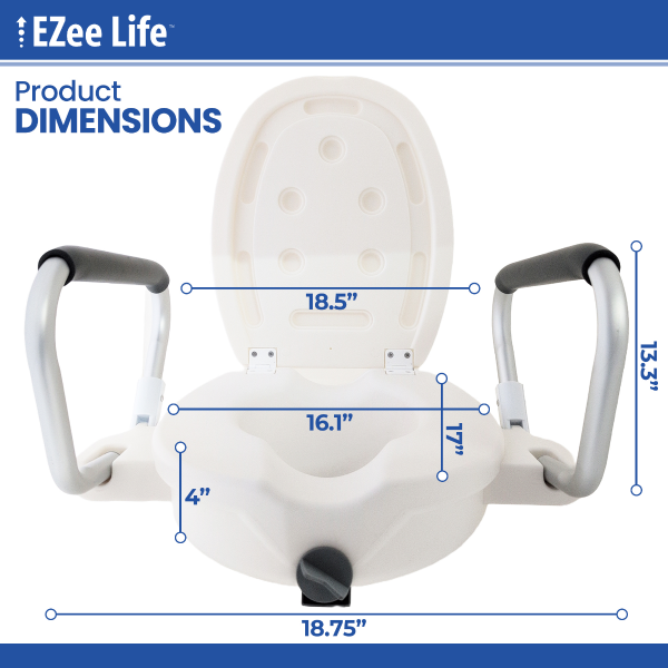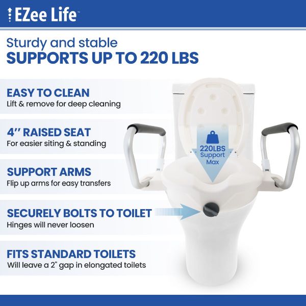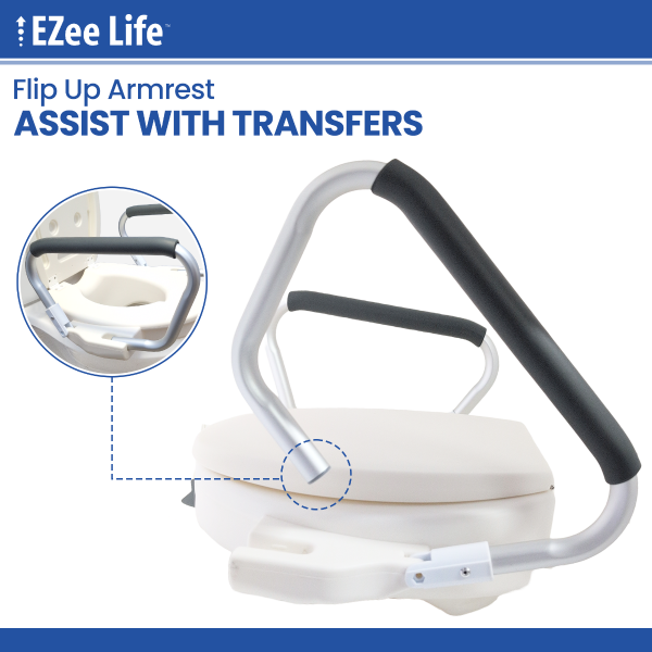 EZee Life, 4″ Raised Toilet Seat with Flip Back Arms, CH2027