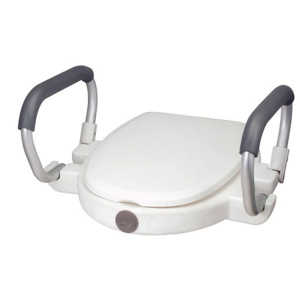 Most raised toilet seats prevent the use of a toilet seat lid but this design has its own lid that can be closed when needed and flip back removable arms that will provide stability when sitting and transferring and accessibility if needed when flipped back.