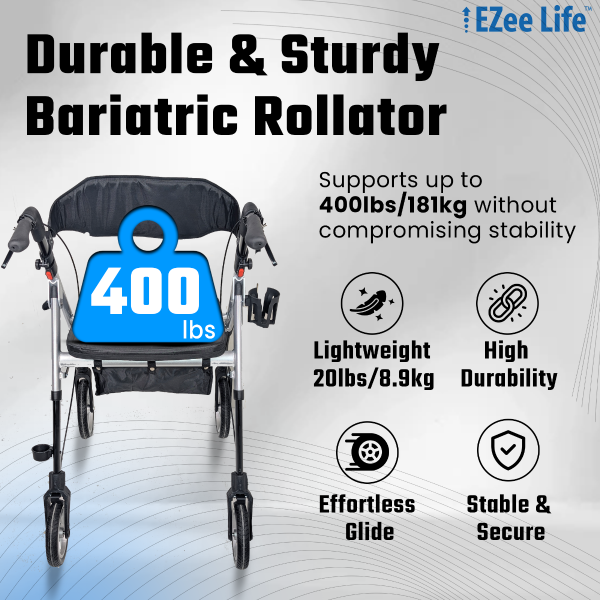 Bariatric Rollator with Adjustable Seat and Armrests by Ezee Life