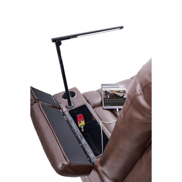 - Open Split Arm Design with Storage