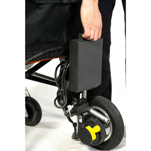 Weighs only 33 lbs. Making it the lightest power wheelchair on the planet.