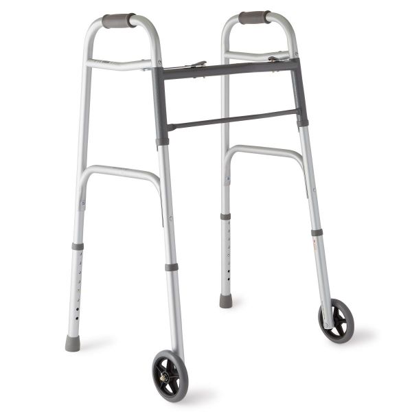 Two-Button Folding Walkers with 5″ Wheels by Medline