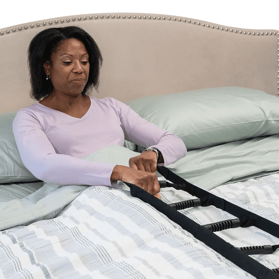 - Loops securely over a bed post or frame and is ideal for individuals with limited strength or mobility.