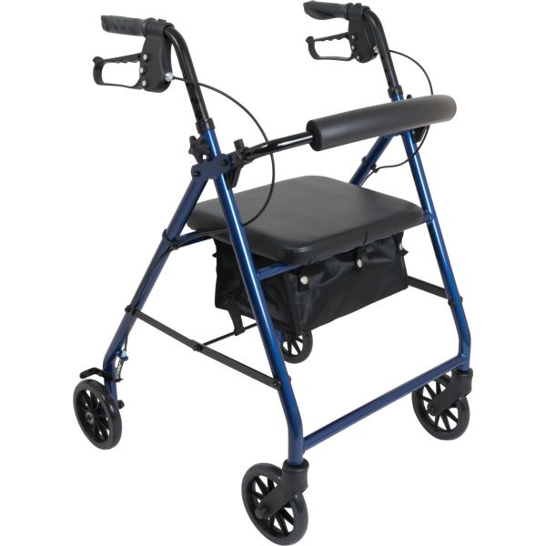 The ProBasics Aluminum Rollator is designed to fit the majority of your patients’ fundamental needs with a focus on style and affordability. Constructed of lightweight aluminum, it offers great maneuverability and stability. Equipped with easy-to-operate ergonomic hand brakes, a removable padded backrest and a water-resistant nylon pouch. Easily folds for storage and transport with built-in fold strap. Supports patient weights up to 300 pounds.