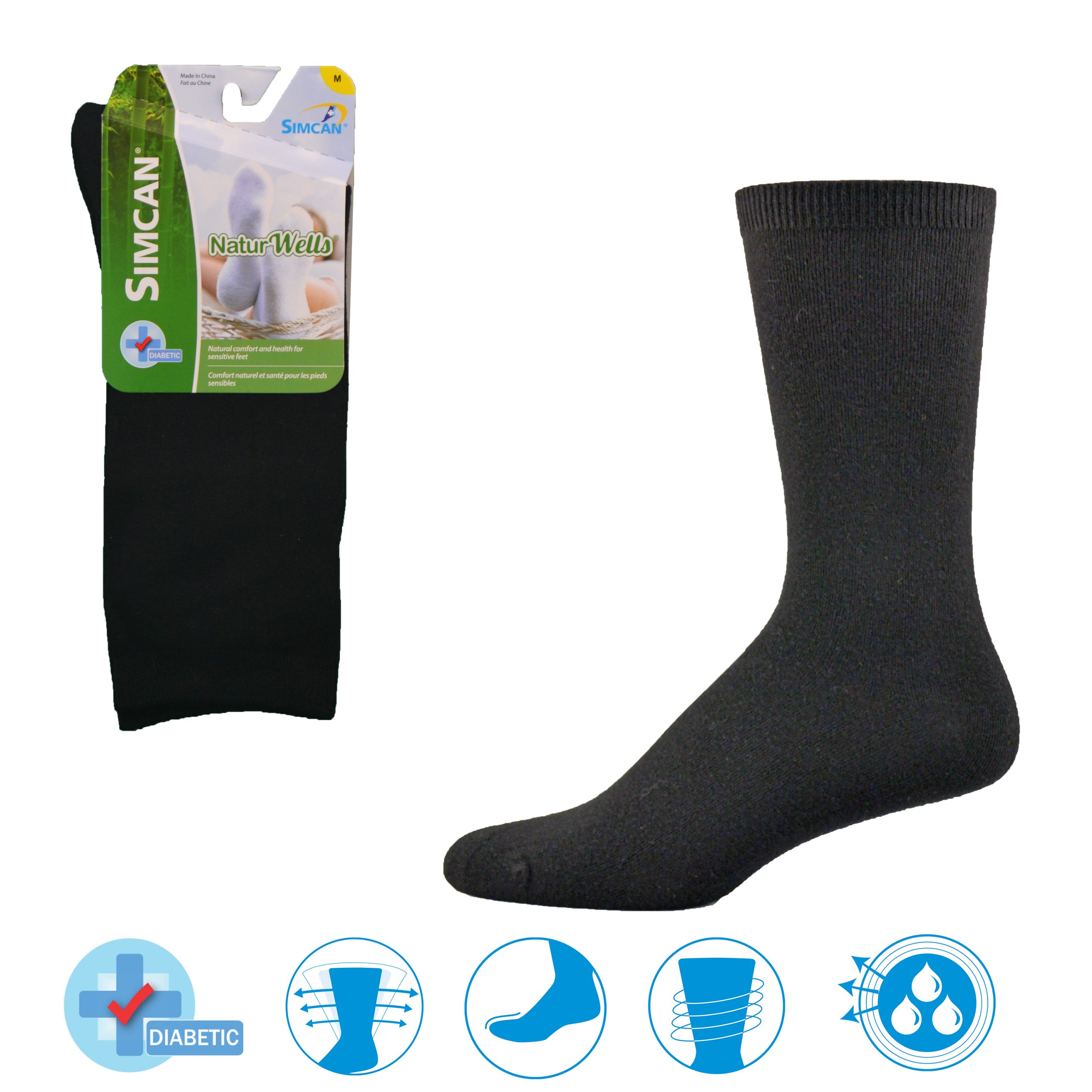 Simcan® Natur Wells® are designed to provide the ultimate in luxurious comfort and yet provide all the wellness features found in a Simcan® brand sock. Knit from Bamboo Rayon these socks provide a high stretch, nonconstrictive leg and slip resistant weave. Simcan’s miracle stretch technology has been used to allow the sock to fit even the widest leg. An entirely flat toe closure is an additional feature designed to accommodate the most sensitive toes.