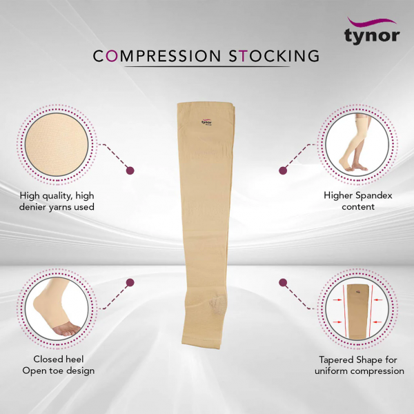 Provides controlled compression to the legs to squeeze any abnormal backflow of blood towards the heart. They compress the outer walls of superficial viens to make them strong and prevent varicose veins.